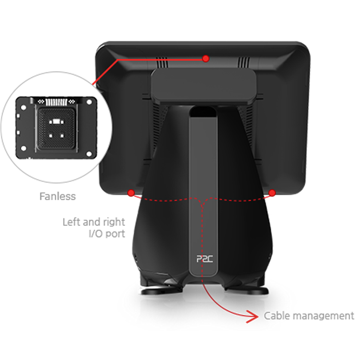 Sistem proiectat sa functioneze fara utilizarea ventilatoarelor Sistem fanless - foarte silentios Porturi de conectare pozitionate de o parte si de alta a ecranului pentru conectarea rapida |