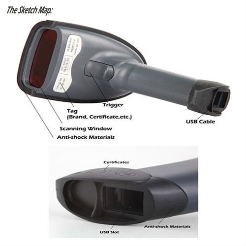 - Zona de lucru mare: de la contact pana la 43 cm pe un cod de bare 1OO% UPC/EAN