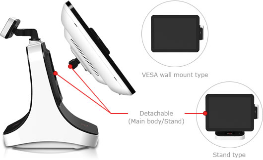 inlocuire rapida a corpului si a suportului sistemului POS cu o singura miscare Se poate monta imediat pe perete dupa demontarea de pe suport |